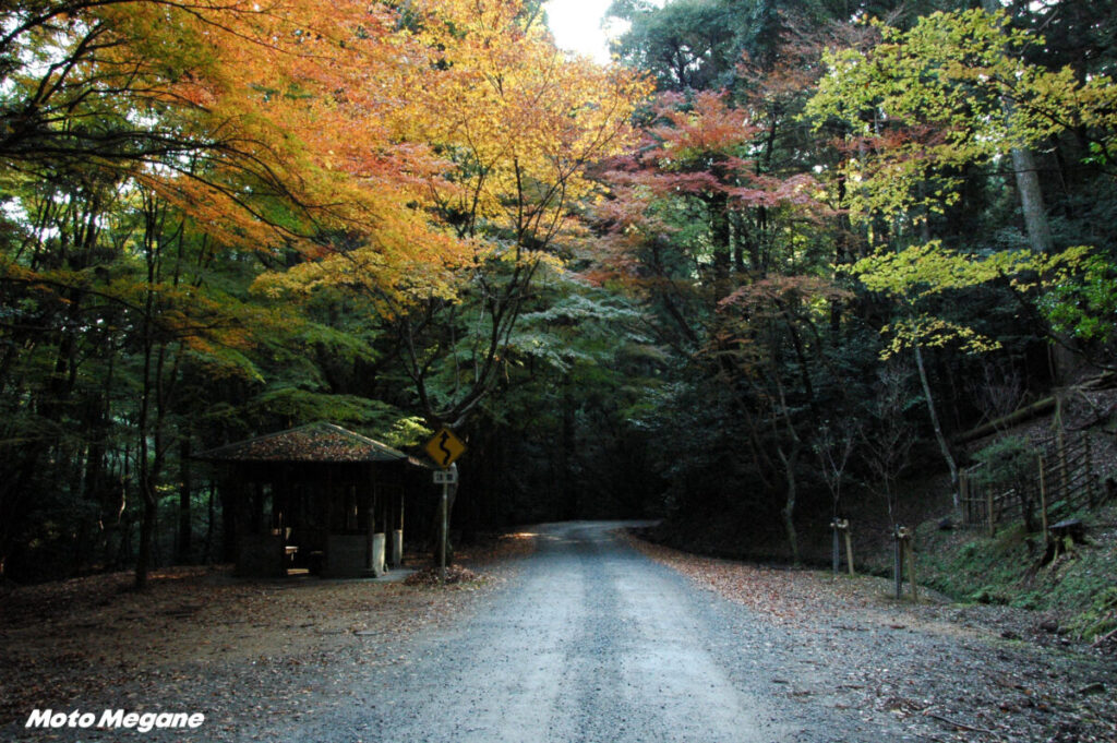 春日奥山コース 新若草山コースと高円山コースの間に挟まれた形のコースで、原始林として知られる「春日山」一帯を通行する未舗装路である。途中には「鶯の滝」などの名所もあり、「ありのままの自然」あふれる風景を楽しめる。11月中下旬は紅葉の森林の中をゆっくりと走ることができる。週末はハイキングの歩行者も多いので注意して走りたい。
