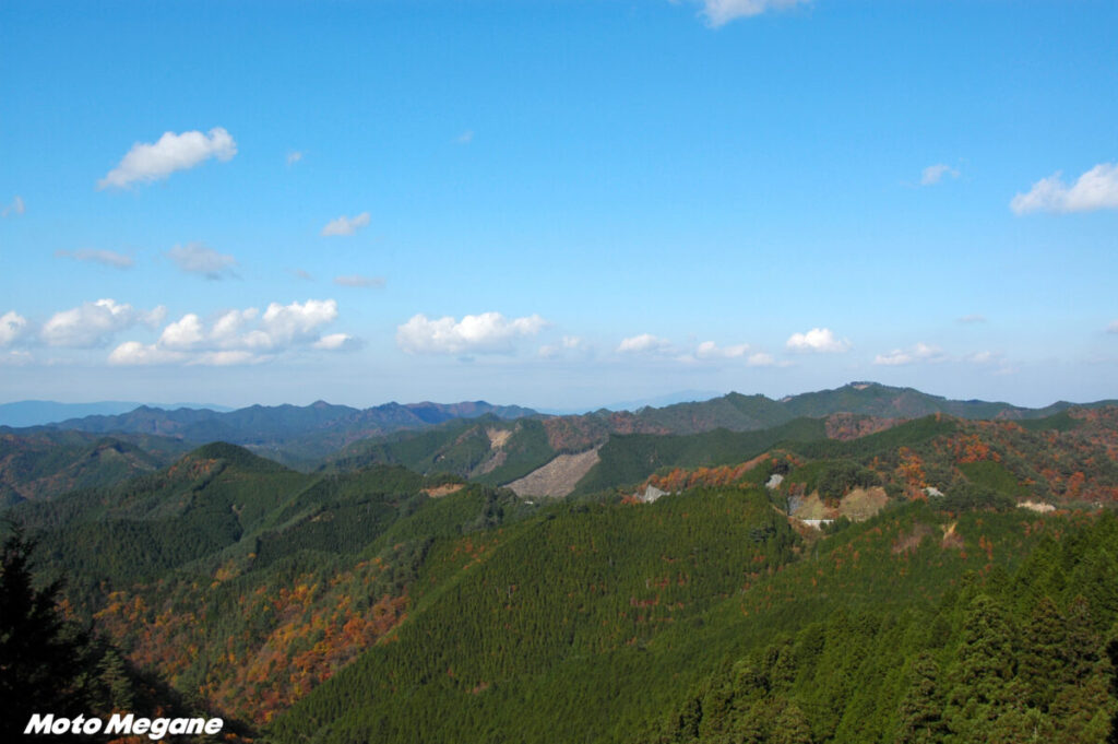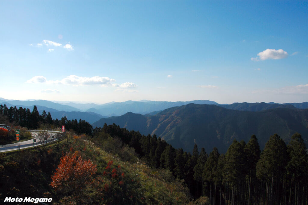 道路は大変よく整備されており、アップダウン、ヘアピンから高速コーナー、展望の開けたスカイラインから険しい崖っぷちを十分過ぎるほどに堪能できる道だ。ただ、信州方面と比べ、山の景色変化が少ない印象は否めない。ごまさんタワーから森林公園ワイルドライフ、龍神に下る道はなかなかの迫力である。