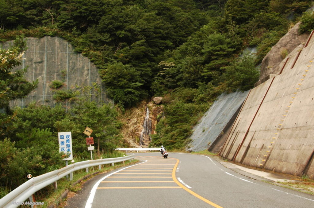 武平トンネルを抜け滋賀県にはいると、渓谷の中を走るので展望はなくなる。道路幅がやや狭くカーブはよりタイトになり、一部湧き水の出る場所もあるなど、走行には少し注意が必要だ。