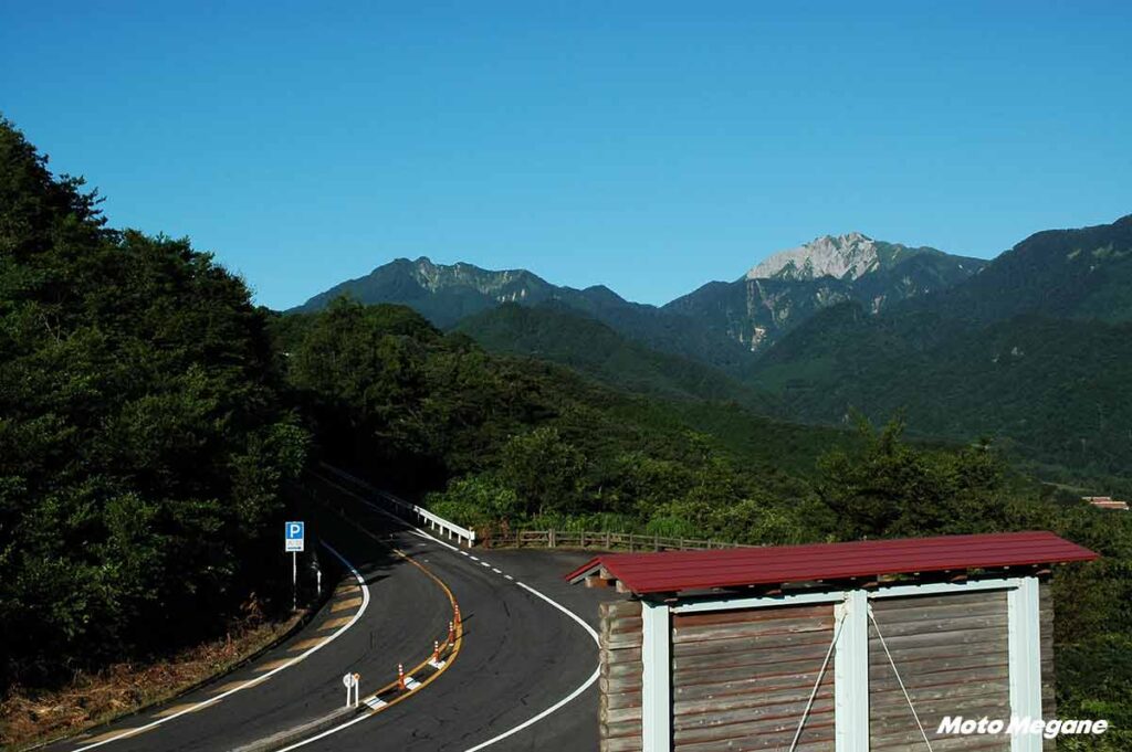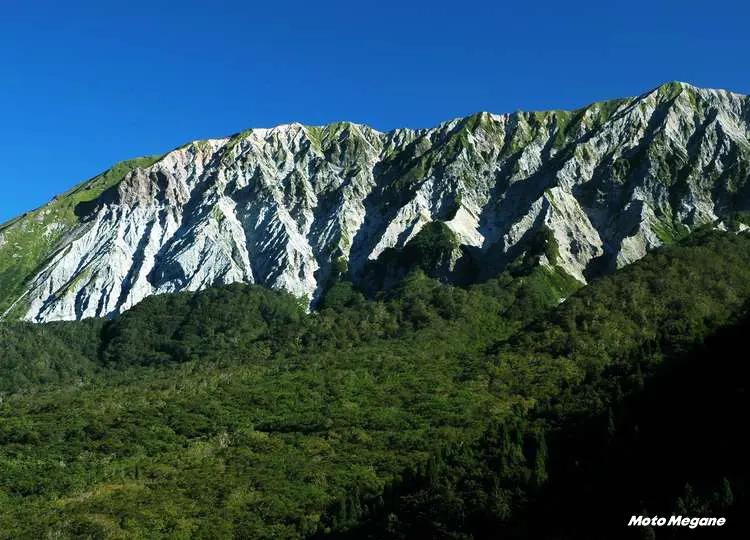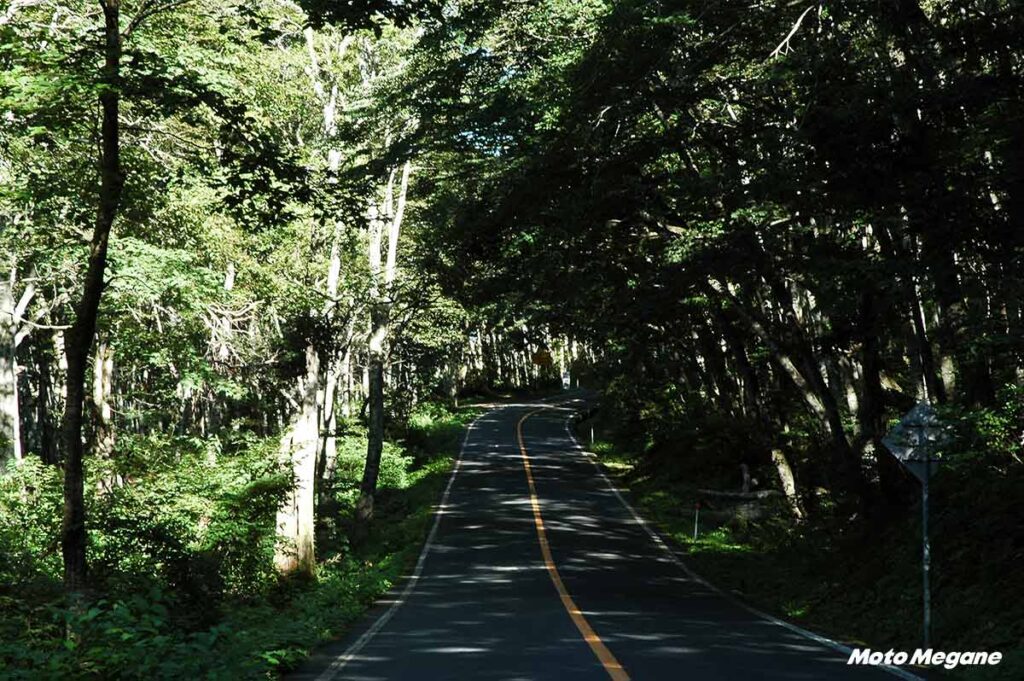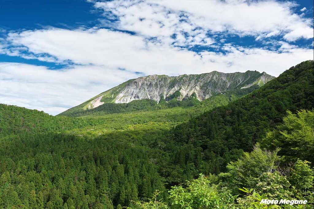 圧巻は鍵掛峠からの大山南壁の景色。西側からは別名『伯耆富士』(ほうきふじ)と呼ばれおだやかな形状をしているが、南壁はまるで違う山で屏風のような切り立った崖が目の前に現れる。紅葉シーズンの周辺は大渋滞となり、峠の駐車場は常時満車になるので早朝を狙うしかない。鍵掛峠から先の道路はやや狭くなりブナの樹林帯の中を走るヘアピンの連続で、相当なテクニカルルートになる。なお、2022年8月現在、環状道路は災害復旧の整備があちこちで行われている。一方通行区間もあるので注意が必要。しかし、そのおかげで、一部区間の拡幅や路面状況は劇的に改善され、走りやすくなっている。秋に向けて楽しみな道路だ。