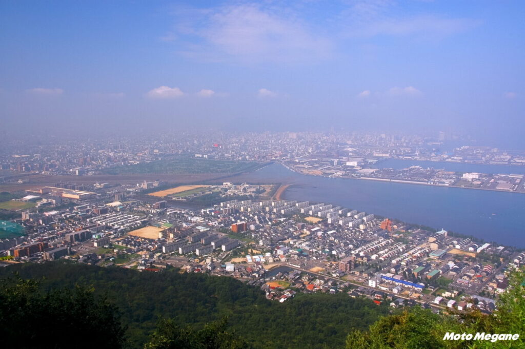 源平合戦の中でも有名な、那須与一による「扇の的当て」の伝説が生まれた彼の地である『屋島』。瀬戸内海にある溶岩台地の山で、平坦な山頂部分と急峻な斜面が特徴だ。『屋島ドライブウェイ』はその山頂へ登る道で全長は3.7㎞と思いのほか短い。旧名「屋島ドライブウエイ」は有料の自動車専用道路だったが、観光地としての活性化を目指し、歩行者と自転車が通行するための整備を行なって、2018年5月26日「屋島スカイウェイ」と改名し無料化された。かわりに山頂駐車場が有料となっている。(200円)