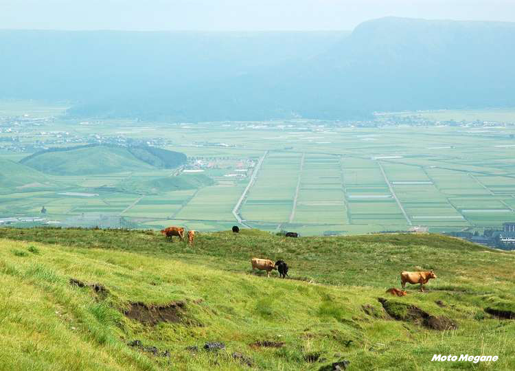 1. 緑輝く春から夏。カルデラの水田が黄金に輝く9月もいい。