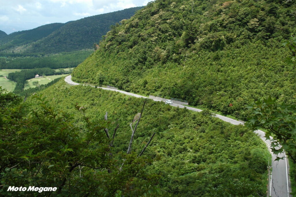 仁田峠を過ぎると道は国道389号に向って下っていき循環道路は終わる。この循環道路につながる国道389号と国道57号は、林間の景色がよく路面も整備されていてとても走りやすい。