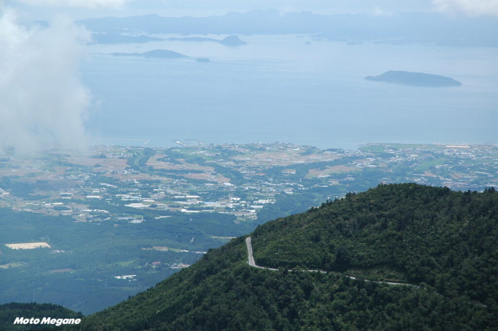 島原半島は仁田峠循環道路以外にも素晴らしい道路がたくさんある。雲仙グリーンロードはほぼ半島を周回し、南西部区間の棚畑展望台や花房展望所からは、普賢岳の火山灰が積もった独特の赤土の段々畑が見下ろせる。平成新山の溶岩流出帯の脇を登っていく島原まゆやまロードも景色と走りの両方を備えた快走路だ。