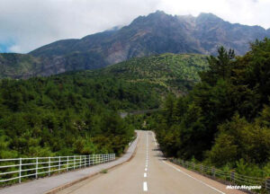 有村崎付近は溶岩の中につくられた道路で、火山地形独特の風景を醸し出している。