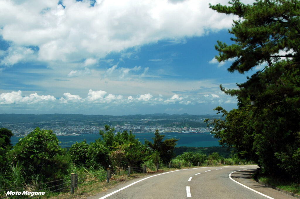 展望道路とともに、桜島の周回道路である国道224号と県道26号もお薦めだ。有村溶岩展望所周辺は、降り注いだ火山岩や流れ出た溶岩の中を走り、溶岩の合間に育つ緑と海の青が素晴らしい景色を見せてくれる。