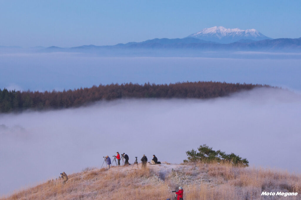 ビーナスラインの西側の麓には、松本盆地を見おろす有名な高ボッチがある。360度の眺望が開けた山頂は標高1665mで、東方向には諏訪湖に加えて条件次第では富士山を望むことができ、西方向には穂高連峰や北アルプスが広がる。神々しささえ感じるような日の出や日の入りだけでなく、夜には満点の星空が広がり、10月中旬から12月までみられる雲海も素晴らしく、シーズンには多くのカメラマンが高ボッチに集まる。「高ボッチ」という不思議な名前の由来は諸説あるものの、代表的なものは以下の3つのようだ。