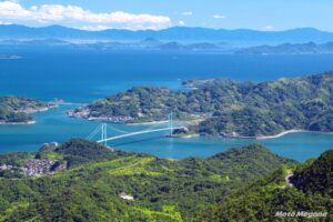 開通当初は瀬戸内海の景色も眺望できたが、現在は樹木が伸びて、走りながら眺望できる区間は少なくなっている。展望台は、スカイライン途中にハチマキ展望台、山頂ビジターセンター先に兜岩展望台、弘法寺付近に星降る展望台の3つがあり、それぞれ、安芸灘諸島と四国を眺望できる。お薦めは4月初旬で、ハチマキ展望台の少し下に見事な桜のトンネルが現れる。