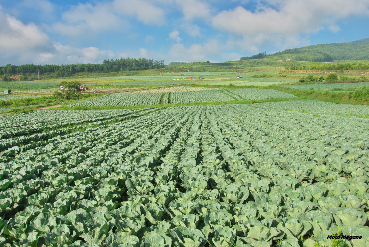 - キャベツが収穫期を迎える7月~9月が道路の雰囲気を感じる。