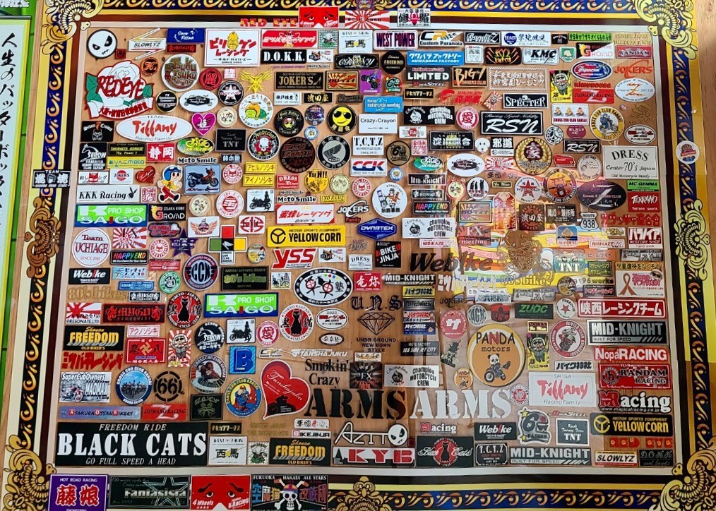 「無料なので早くのイベントとかできたらいいなぁっと思ってます。とにかく自由に使ってよっていうのがバイク神社なんで。それとステッカーを貼ってねっというスペースがありまして、遠方から来れない方たちも居るじゃないですか、そういう方は送ってくれたらちゃんとスペースに貼るよという企画をやってるんで、来れない方は、是非、送って欲しいです」