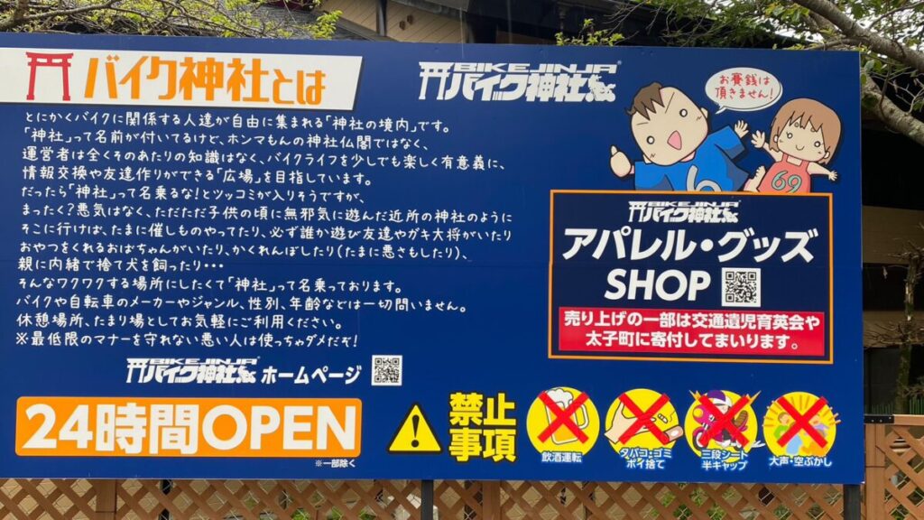 「バイク神社の看板やホームページにも堂々と書いてるんですけど利益は一切取りません。万が一、イベントなどで利益的なものが出たら交通維持、交通遺児育英会と地元の太子町に寄付すると堂々と書いてしまっているので1円も設けられないんです」