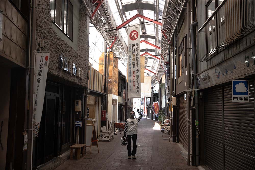 将棋の世界で活躍を続ける藤井聡太竜王は瀬戸市出身。商店街には垂れ幕が飾られていました。