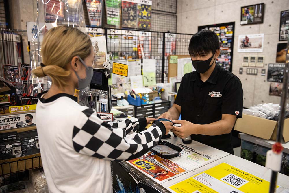 色々目移りしながらも、目当てのグローブを購入。私は手が小さいためキッズサイズのグローブがちょうど良いのですが、店舗で売られているキッズサイズには限りがあり、品揃えが多い場所に巡り会えなかったことが悩みでした。しかし、ダートバイクプラスではFOXやFASTHOUSEなど多くのブランドが揃っているほか、サイズや色の展開も多くてびっくり。色々試着しながらお気に入りのグローブを選ぶことができました。