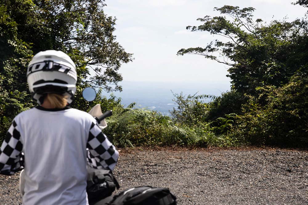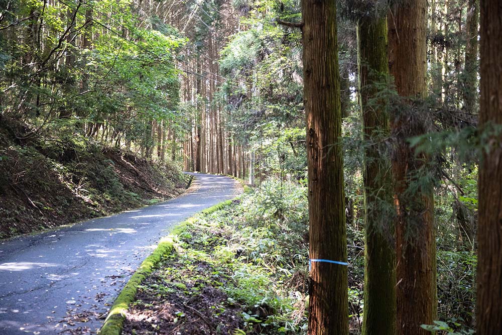 お腹いっぱいになったところで、次に目指すのは「三国山山頂展望台」。品野陶磁器センターからは約25分ほどの位置にあります。住宅街を抜け、山道に入っていきます。道が狭くなり、木々に覆われた自然あふれる空間。標高が高くなるにつれて気温は下がり、木漏れ日を見ながらの走行がとても気持ちよかったです。