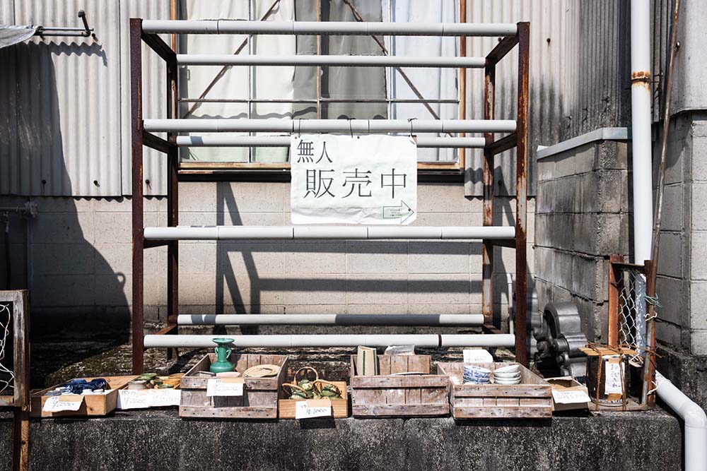 窯垣の小径に行く途中には、窯屋さんの邸宅も多く見られます。ここでは無人販売が行われており、お茶碗や急須、コップなど様々な陶器がお手頃な価格で販売されていました。