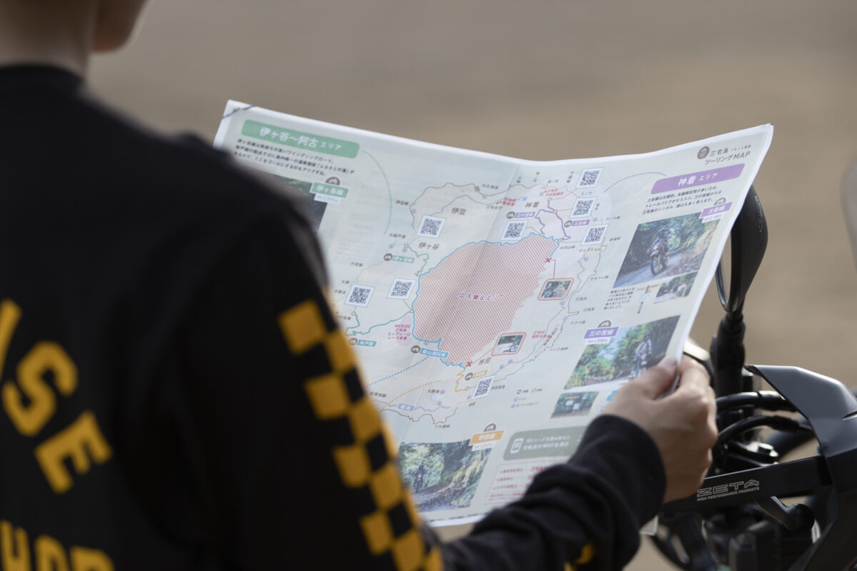 でも実は去年、こんな「三宅島ツーリングMAP」なるものがリリースされたんですよ。冊子で作られたものは何かのイベントで配布されたらしく、もう島にはほとんど残っていないようなので、WERIDE三宅島の公式ホームページで公開されているPDFを印刷して持って行きました。