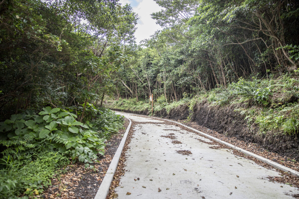 坪田地区から三宅一周道路を使ってぐるっと半周。島の北東部から「火の山峠」と呼ばれる峠へ登っていくと、さっきの「雄山環状林道」通行止めの先に合流できます。