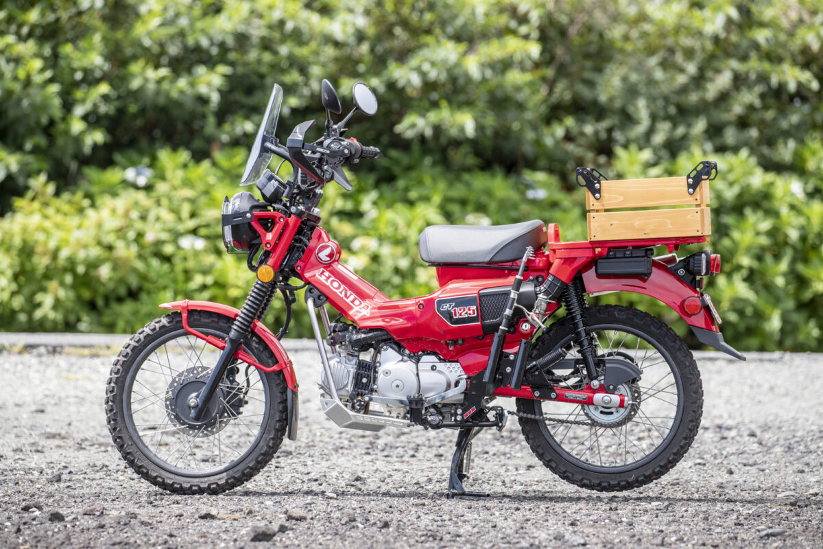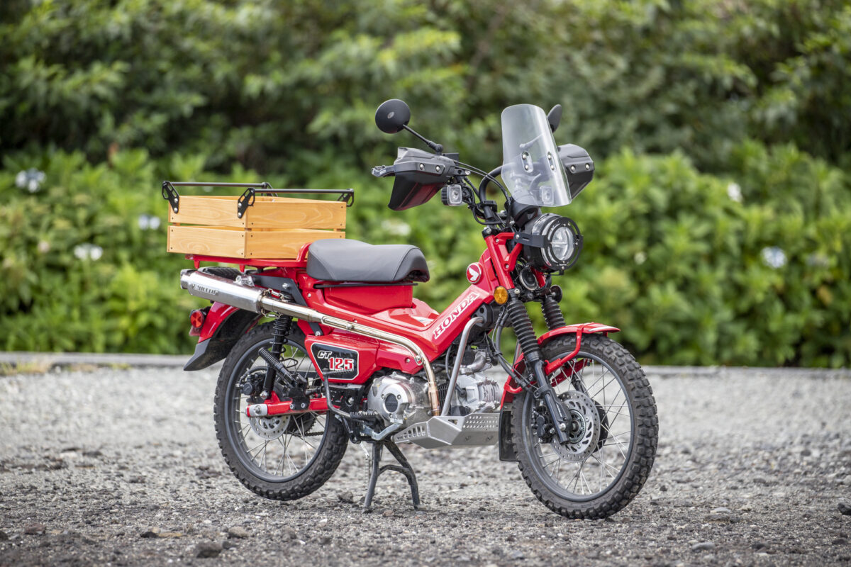 とまぁそんな事情から選択したのはまずCT125・ハンターカブ。見ての通り、ゴリゴリにカスタムを施しています。カスタムの詳細は後ほどしっかりご紹介するとして、もう一台は……。