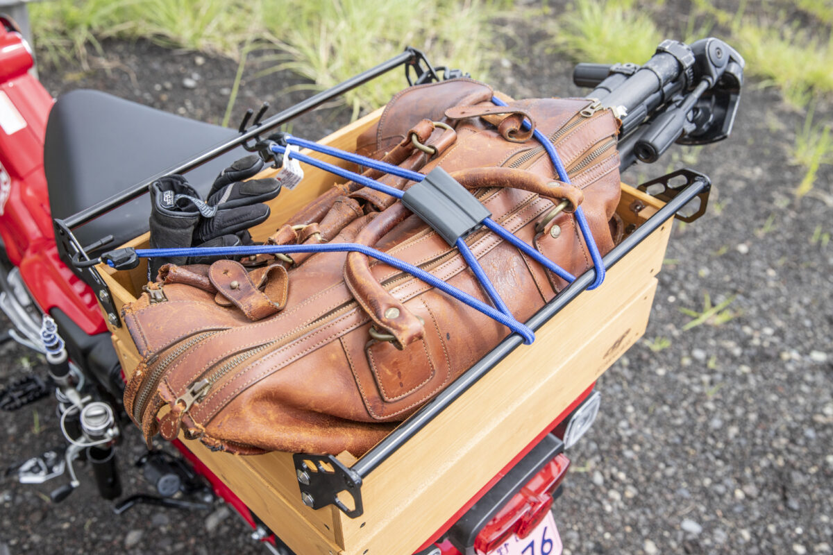 せっかくのハンターカブにホームセンターの箱をつけてる人、結構いますよね……。高いものが良いとは言いませんが、せっかくのハンターカブなんだから、もう少し見た目を気にして欲しいと思ってしまうわけです。こちらは元々あった汎用品に、ハンターカブに簡単に装着できるように取り付け穴を開けてくれたものをわざわざ追加ラインナップ。
