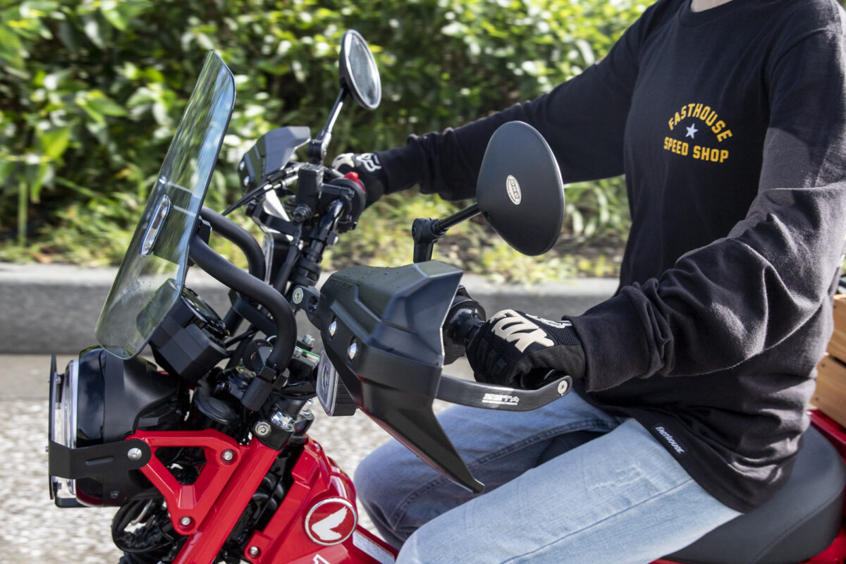 ハンドルバーとグリップエンドを結ぶガード。CT125ハンターカブ専用のバーエンドが付属しているため、面倒な純正インナーウエイトの脱着作業をせずに装着が可能です。