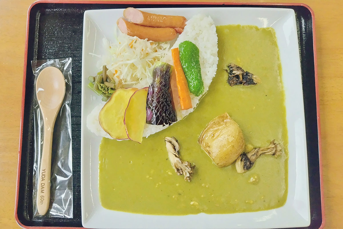 続いて訪れたのは【道の駅 錦秋湖】。ここでは名物の『ダムカレー』と『湯田ミルクソフトクリーム』がオススメです。