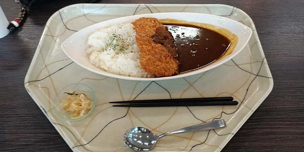 パドック内のレストラン「SUZUKA-ZE」の入口とオススメのボリューム満点「カツカレー」です。