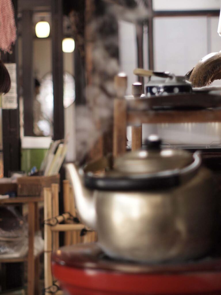 ヤカンで沸かしたお湯を急須に入れていただく緑茶でほっこり
