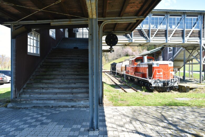 敷地内を走る「S-304」は、1939年に製造された産業用蒸気機関車です。80歳を過ぎた今も現役。週末や祝日には、お客さんを乗せて力強く走っています。乗車体験の後は、愛車とSLが撮れる駐車場に移動。躍動感のある写真が撮れましたよ!