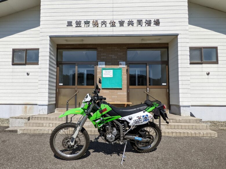「バイクで鉄道旅」の宿泊は、廃止された幌内線・旧茅野駅を改装したライダーハウスで決まり。すぐ近くで美容室を経営している坂梨宣行さんが、ライダーハウスを利用してツーリングを楽しんでいたことから、町内会で駅舎を借り受けて、旅人の集いの場として開放したそうです。1泊千円でトイレ・シャワールームもあり、数量限定で布団も無料で貸し出してくれます。テレビ、電子レンジ、冷蔵庫、洗濯機も完備。まさに至れり尽くせりです。