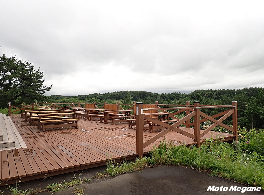 建物裏には十三湖を眺めながら休憩ができるテラス席も用意されている。