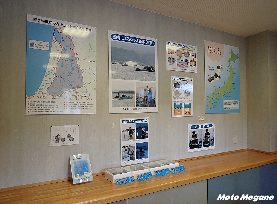 道の駅が面するR339は津軽半島最北にある龍飛崎へと向かう道で、小泊から先は竜泊ラインと呼ばれる人気のツーリングルートだ。険しい山々と断崖絶壁を走るワインディングロードで、天気が良ければ日本海の絶景を楽しめる。五所川原方面から龍飛崎に向かう時には道の駅を通過する。十三湖産のしじみを味わえ、十三湖などの景色を楽しめる道の駅は、食事や休憩におすすめの立ち寄りスポットだ。