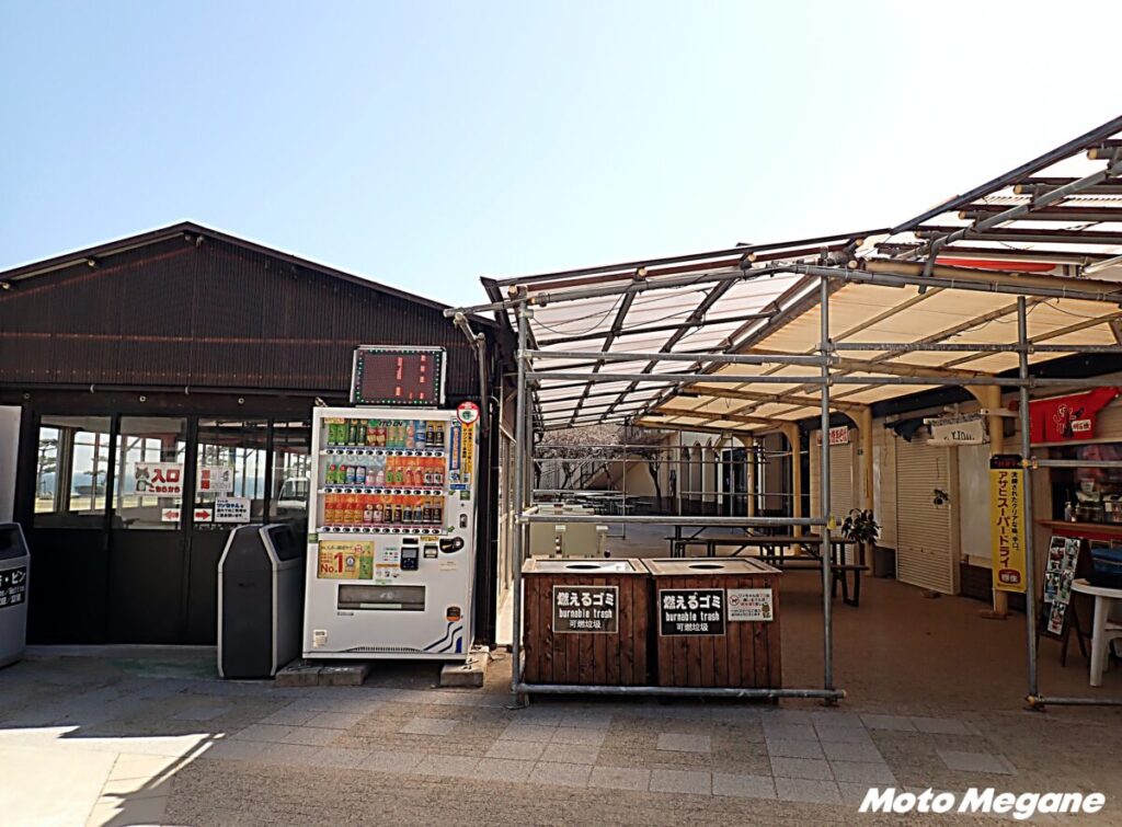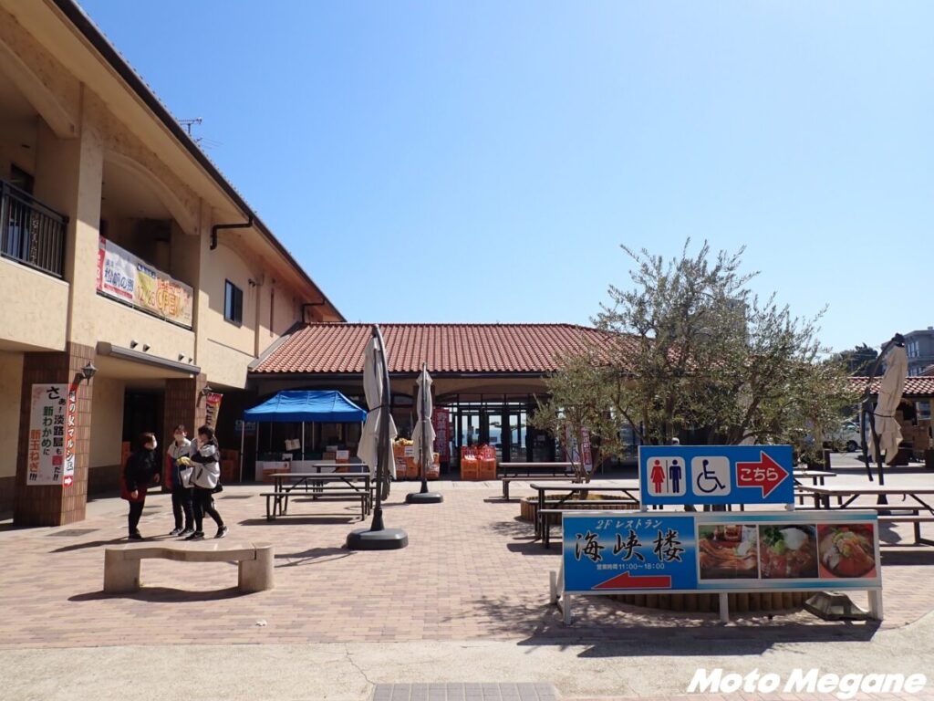 『道の駅 あわじ』は神戸・淡路・鳴門自動車道の淡路ICを降りて約5分、県道31号線沿い、明石海峡のたもとに位置。明石海峡大橋に一番近く、すぐ目の前には明石海峡と明石海峡大橋という絶好のロケーションだ。道の駅施設には、売店、レストラン、海鮮丼屋、食堂、バーガーショップ、鮮魚売り場、ほかテナントが数店舗入っている。駐車場の一角にはバイク用の駐輪スペースが用意されている。建物裏は広々とした芝生広場となっている。