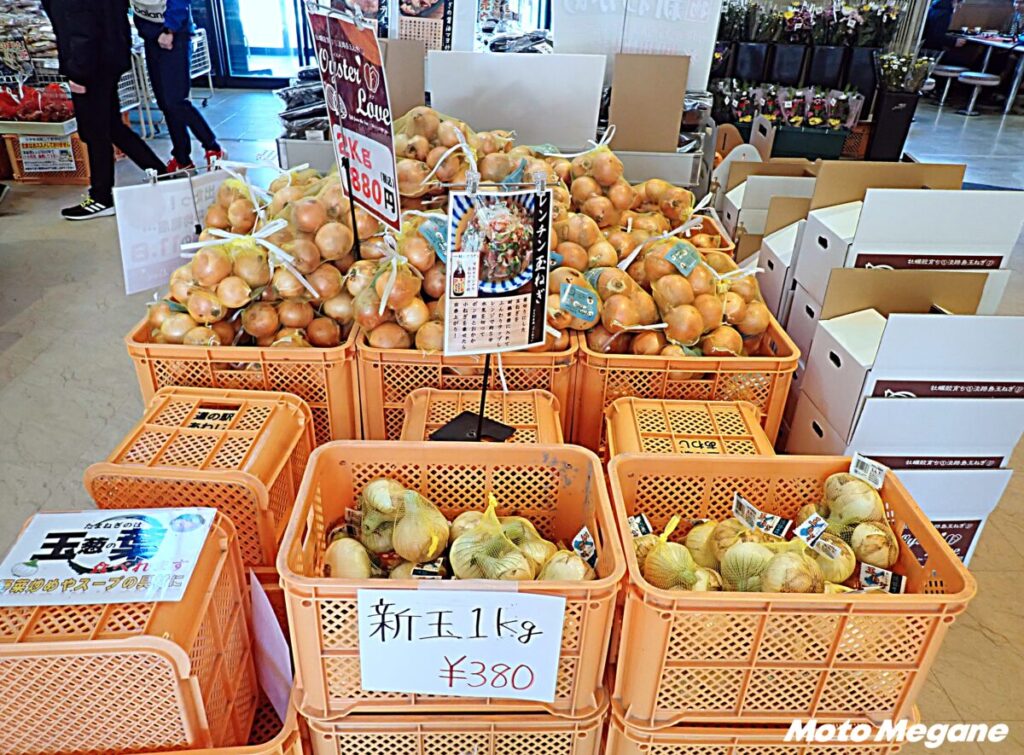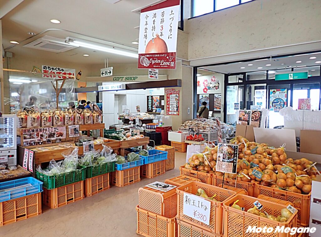 売店には、地元産の野菜や海産加工品、特産品などが揃う。商品のうち60%以上が自社開発のオリジナル品で、目印にオリジナルステッカーが貼ってある。淡路島特産の玉ねぎ商品も豊富だ。