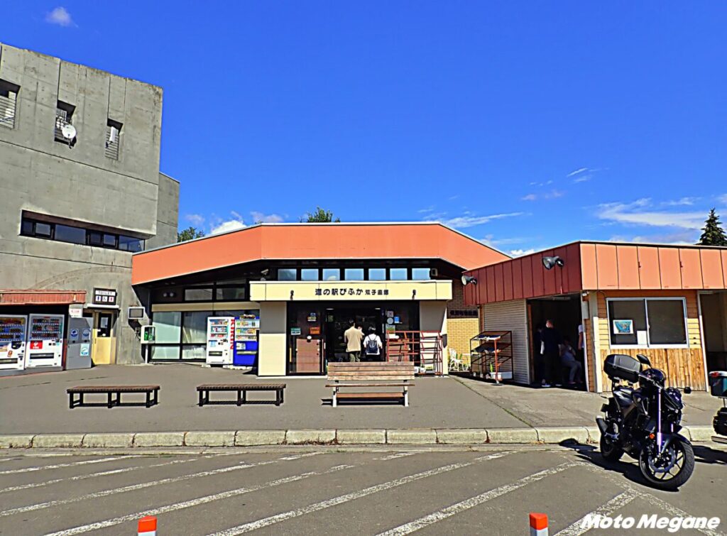 『道の駅びふか』はR40に面しており、アクセスは抜群。駐車場は広く、建物前にはバイク用の駐輪スペースも用意されている。道の駅施設はイタリア人の建築家が設計した、中世ヨーロッパ風の建物。1階に物産販売所の「双子座館」、2階にレストランが入っている。「双子座館」の名前の由来は、美深町にある松山湿原と森林公園「びふかアイランド」を兄弟と位置づけていることからきている。
