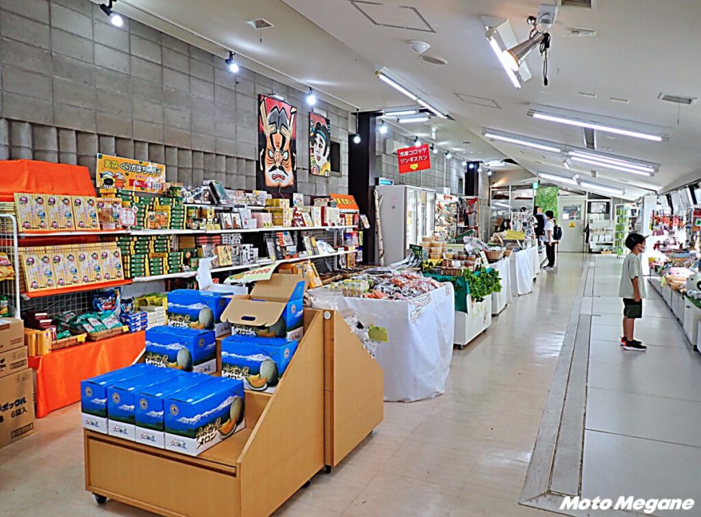 販売コーナーには、地域の特産品や土産品などが並ぶ。特産のくりかぼちゃのお菓子や、クラフトビール、珍しい羊のミルクなどが取り揃えられ、入口付近には、地元のパン屋が毎朝焼き上げる手作りパンが種類豊富に並べられている。レストランでは、本格スパイスカレーやラーメン、そば・うどんや定食などを味わえる。