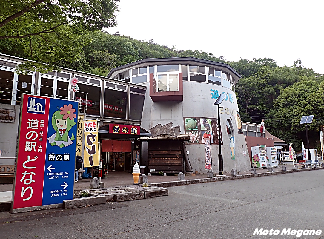道の駅施設はコンクリートの円柱状の形が特徴的で「餐(もてなし)の館」という名が付けられている。中に入ると、約8.7mの巨大なたらいが展示されている。これは地元の郷土料理の「たらいうどん」に使われる「たらい」で、巨大たらいは円柱状の建物にすっぽりと収まり、1階部分の天井の役目も果たしている。らせん状のスロープを上がると、たらいの中に「恋成神社」が建っており、神社には自然に形成されたハート型の石がご神体に祀られていて、恋愛成就のちょっとしたパワースポットにもなっている。