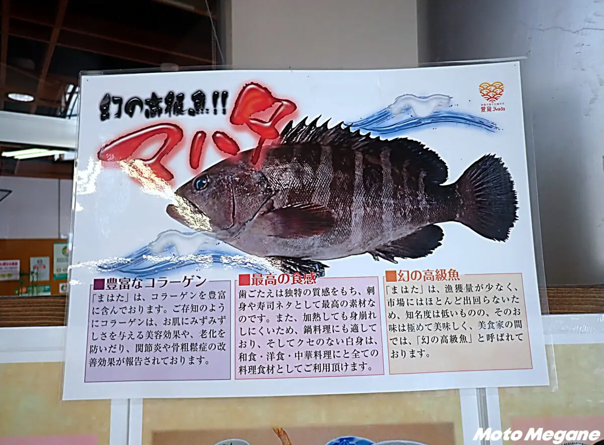 クエと同じハタ科の白身魚で、漁獲量が少なく市場にあまり出回らないことから「幻の高級魚」とも言われる。クセのない白身、プリプリとした弾力のある食感が特徴で、コラーゲンが多く含まれている。刺身や寿司ネタで食べると美味。レストランでは刺身やにぎり、カブとの煮付けが食べられる。