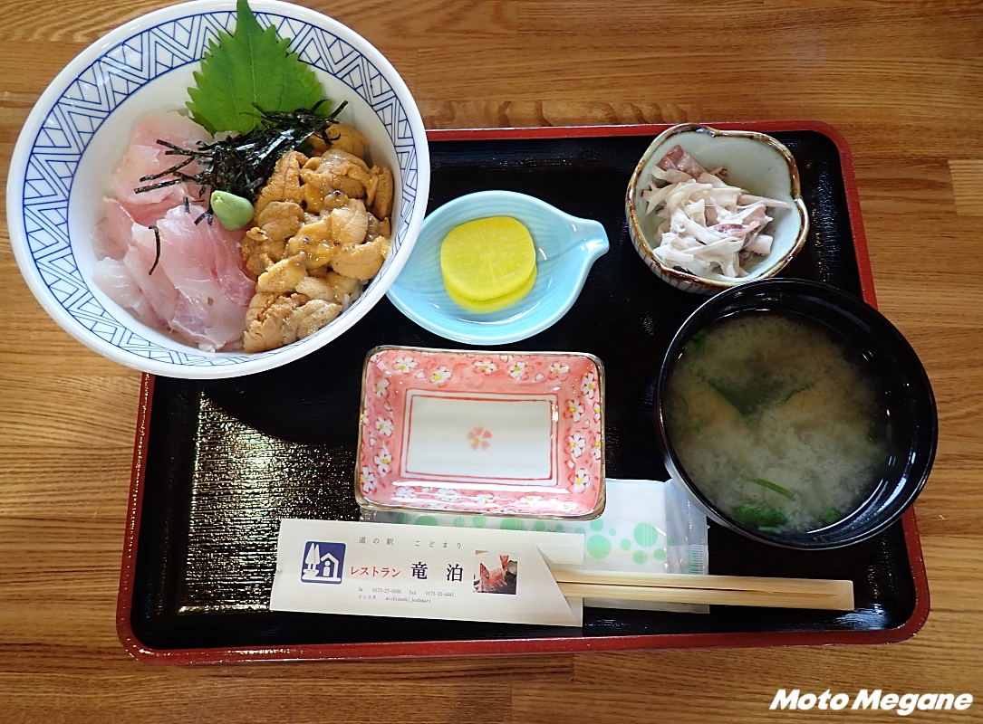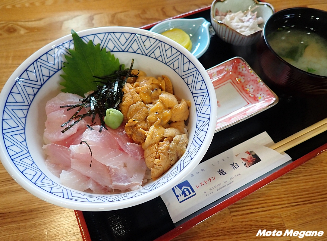 道の駅が面するR339は「竜泊ライン」と呼ばれる絶景ロードで、東北では外せないツーリングコースだ。小泊と竜飛を結ぶシーサイドラインで、海岸線の爽快なルートや山間を走るワインディングまで、変化に富んだ走りを楽しめる。途中にある「眺瞰台」は、天気が良い日には北海道まで見ることができる展望スポットとなっている。メバルなど地元の海鮮料理を楽しめる道の駅は、東北屈指の絶景ツーリングルートの食事や休憩場所に最適のスポットだ。ただし道の駅は、竜泊ラインが冬期通行止めになる11月上旬から4月下旬まで冬期休業となるので注意が必要だ。