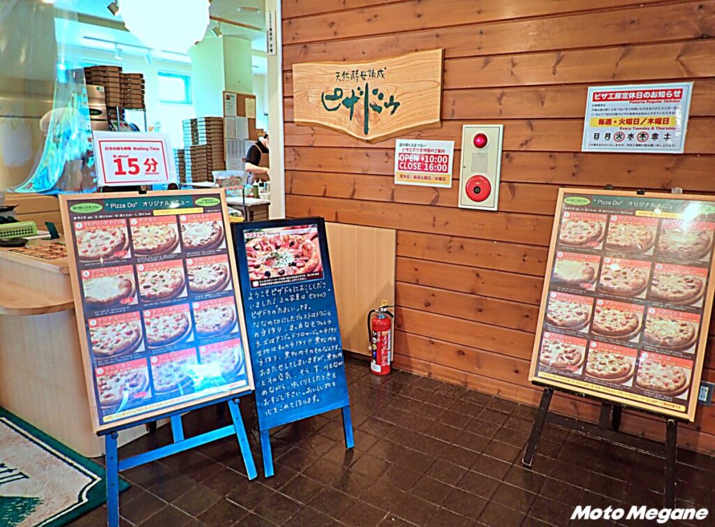 ピザ工房では、石窯で焼かれる本格ピザが大人気。ピザは常時9種類あり、サイズはS・Mがある。ピザには黒松内産のフレッシュモッツァレラチーズやソーセージが使われる。天然酵母で発酵熟成させた全粒粉のピザ生地は、ドイツパン風だ。テイクアウトしたピザは、店内に設置されたテーブル席とカウンター席、屋外のテラス席で食べられる。
