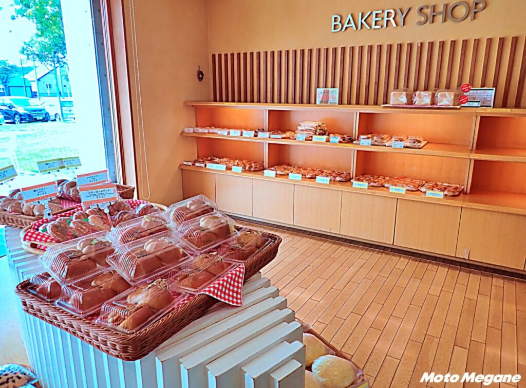 パン工房には焼きたてのパンがズラッと並ぶ。道産小麦、ミネラル豊富な黒松内の銘水「水彩の森」、放し飼い鶏の有精卵、地元食材を使用し工房で手作りされている。店頭には焼き上がりの時間が書かれたボードがあり、パンを目当てに訪れる人も多い。夕方には売り切れ必至だ。