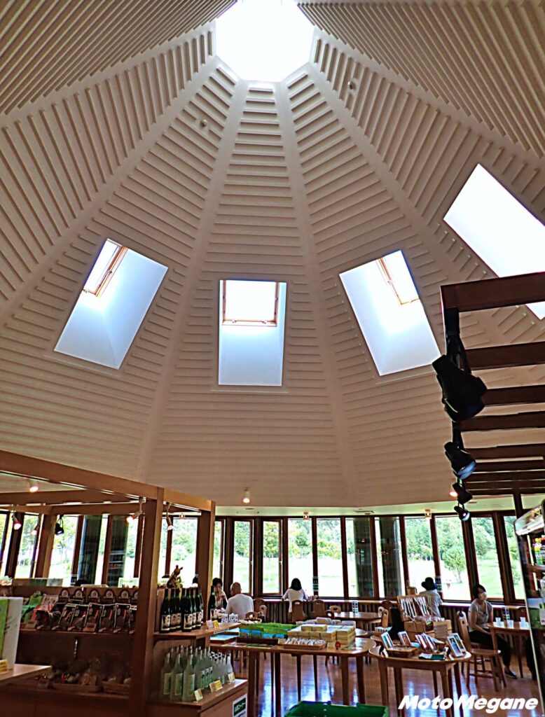特産品展示販売コーナー、パン工房、ピザ工房「ピザドゥ」、入り口前ではキッチンカー「クマゲラワゴン」が営業する。