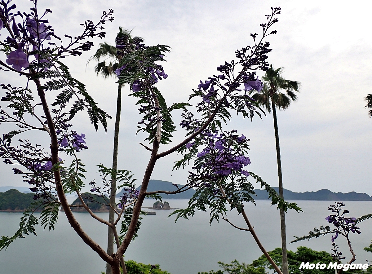 日南フェニックスロードは、宮崎市の堀切峠から都井岬を結ぶ海岸沿いの絶景ルート。展望台のある堀切峠から始まり、フェニックス並木が続く快走路を南下する。青島や鵜戸神社など見どころも多く、『道の駅 なんごう』から南は美しい海岸線が続く。終点の都井岬では、野生馬と太平洋を望む雄大な景観が楽しめる。堀切峠トンネルをはじめショートカットできるトンネルもあるが、美しい岩石海岸や砂浜が続く旧道の海岸線がおすすめだ。