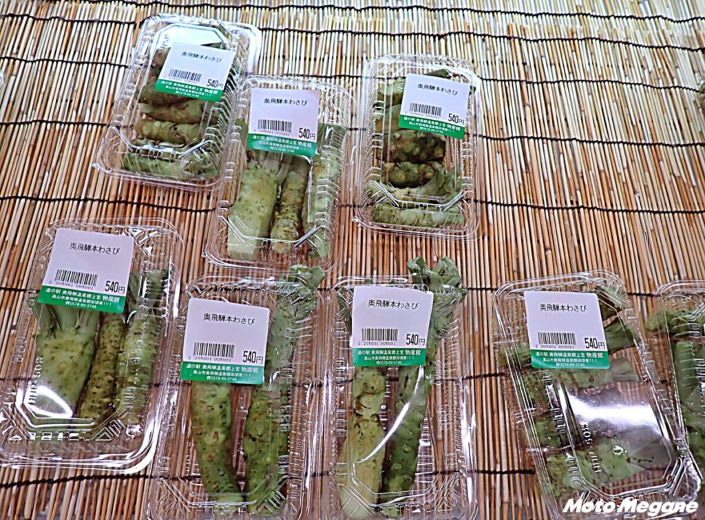 奥飛騨はわさびの産地。新鮮な空気と北アルプスの清らかな雪解け水で育ったわさびは、風味が豊か。近隣のわさび園で栽培されている。通年販売しており、お手頃価格で購入できる。