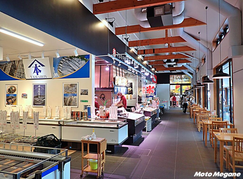 道の駅からはリアス式海岸とコバルトブルーの海の景色を楽しめるコバルトライまで近く、女川を訪れたなら走っておきたい絶景ロード。女川から海岸線沿いに北上すれば、タイトなコーナーの多いリアス式海岸沿いのコースとなっている。女川の新鮮な海の幸を楽しめる道の駅は、食事や休憩に最適の立ち寄りスポットだ。