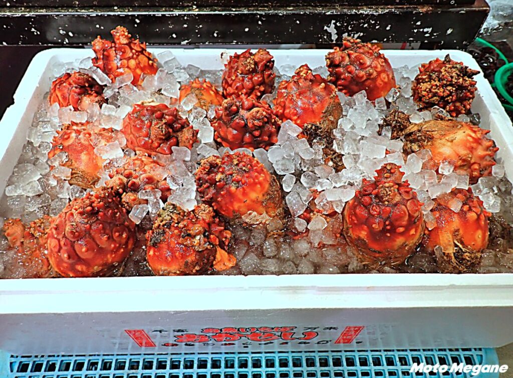 凸凹とした見た目から海のパイナップルともいわれるホヤ。5~8月が旬で、7~8月が一番おいしい時期。「甘み・塩味・酸味・苦味・旨味」全てを感じられる食材。宮城県は真ほやの一大産地となっている。道の駅では生ホヤや、加工品を販売する。