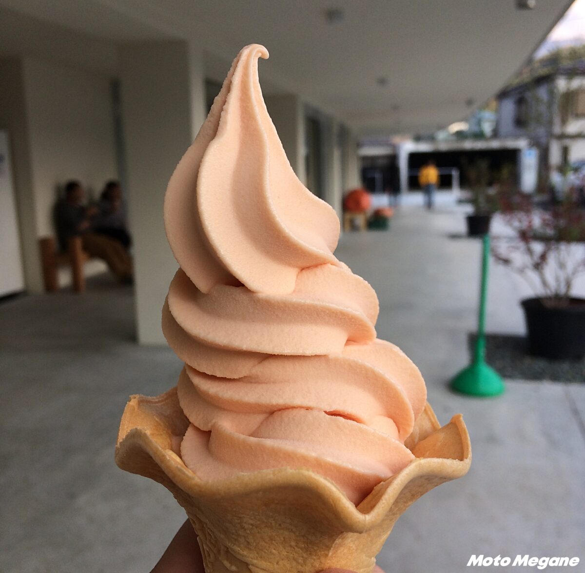 そして3つめはトマトソフト。トマトも花豆と同じく昼夜の寒暖差によって、コクがあり甘みの強いトマトになるという。そんな片品産のトマトジュースを使用しており、トマトの味が超濃厚。クリーミーさもあり、トマトの甘みと酸味がクリーム感と良くマッチしていて、素材の味が活かされたソフトクリームだ。