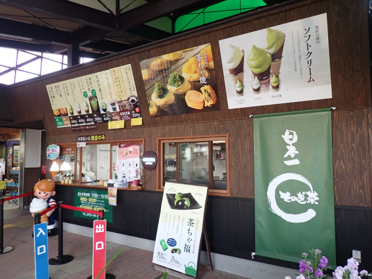 2023年のリニューアルで、ファストフードコーナーも新しくなった『道の駅 彼杵の荘』。物産館入り口横に店舗を構え、ソフトクリームやそのぎ茶のスイーツ、ドリンク類を販売している。