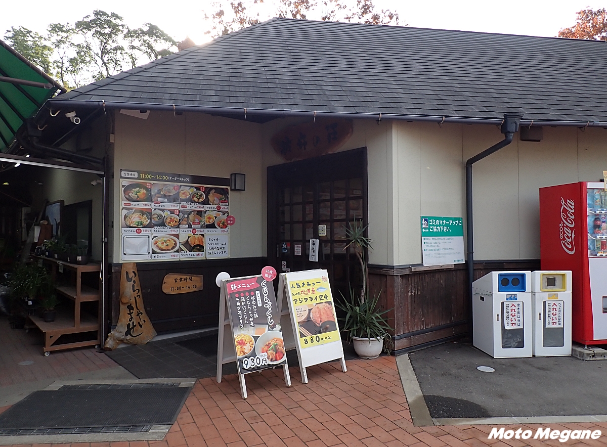 長崎県東彼杵町にある『道の駅 彼杵の荘』は、国道205号線沿いにあり、長崎自動車道東そのぎICから車で約1分とアクセスが抜群。広い駐車場には屋根付きのバイク用駐車場も用意されている。物産館・直売所では、地元産の新鮮な野菜や果物、名産のそのぎ茶や鯨肉、土産品などが数多く取り揃えられている。弁当や惣菜、手作りの菓子類も充実。食事処では、この地ならではのくじらメニューが楽しめ、特に人気なのは、鯨を使った「くじら炊き込みご飯とくじら入りだご汁」だ。また、ファストフードコーナーでは、そのぎ茶餡が入った「茶ちゃ焼」などのオリジナルスイーツやドリンクを楽しめる。