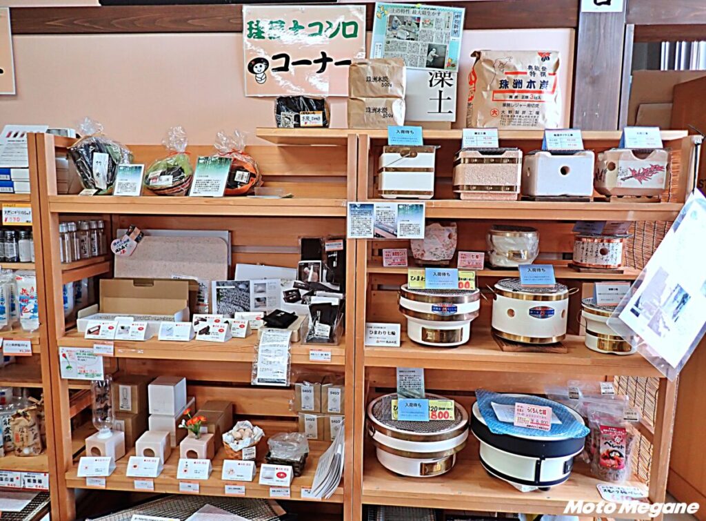 珠洲市は、日本での珪藻土の主な産地のひとつ。珪藻土のコンロや七輪は職人によって1つずつ手作りされている。珪藻土のコンロ・七輪は耐熱性に長け、遠赤外線の効果があり、これで食材を焼くと旨味がアップするそうだ。道の駅の売店では珪藻土コンロや、珪藻土を使った商品が販売されている。