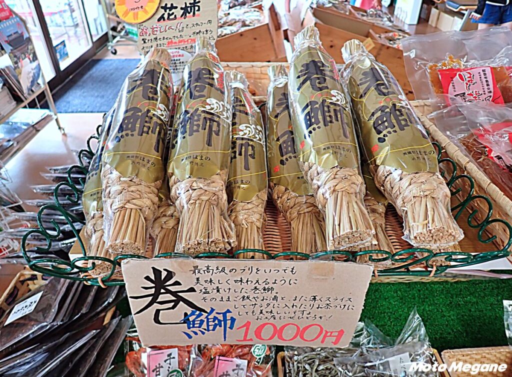 塩漬けにしたブリを乾燥させてワラで巻いた奥能登の伝統的な保存食。そのままご飯のお供にしても、酒のアテにしても、薄くスライスしてお茶漬けにしても良い。常温で販売されているので、ツーリングのお土産にも購入しやすい。